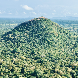 Le Pidurangala Rock est un rocher situé face au Lion’s Rock, souvent considéré comme son alternative plus sauvage. Le site a aussi une dimension religieuse : il abrite un ancien monastère bouddhiste et l’ascension débute par la traversée d’un temple. La première partie de la montée est plutôt tranquille, et s'effectue à travers la forêt, avec des marches en pierre. On atteint ensuite une grande statue de Bouddha couché en briques, puis un premier point de vue qui s’ouvre sur la jungle environnante. Une mer de verdure saisissante, légèrement enveloppée de brume.