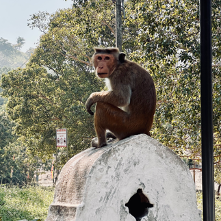 L'après-midi, je me suis rendu aux grottes de Dambulla, classées au patrimoine mondial de l'UNESCO. En chemin, sur le bord de la route principale, j'ai eu la surprise de croiser plusieurs macaques à toque, une espèce endémique du Sri Lanka.