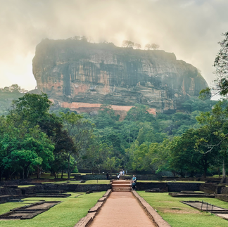 Pendant près de vingt ans, Kassapa transforma le rocher en véritable chef-d’œuvre architectural. Il fit aménager à sa base des jardins royaux sophistiqués, qui marquent l'entrée du site et qui figurent parmi les plus anciens jardins paysagers d’Asie, intégrant bassins, canaux et un système hydraulique ingénieux capable d’acheminer l’eau jusqu’au sommet. Pensés pour émerveiller dès l’arrivée, ces jardins témoignent encore aujourd’hui du raffinement et de la maîtrise technique de l’époque. À cette heure matinale, une légère brume enveloppait le sommet du Lion's Rock, donnant à l’ensemble une atmosphère presque mystique.