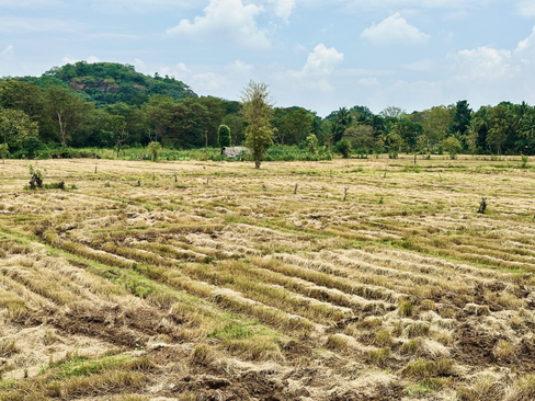 Une fois déposé au bord de la route principale de Sigiriya, j'ai rejoint mon hébergement, le Sigiriya Paradise Inn. Dès mon arrivée, j'ai été littéralement plongé dans une carte postale, car l'hôtel donnait directement sur une rizière – dont le riz venait d’être récolté la veille – avec en toile de fond les deux célèbres rochers de la région : le Pidurangala Rock (à gauche sur la deuxième photo) et le Lion's Rock (à droite sur cette même photo).