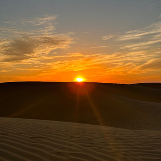 Le campement atteint, nous avons pu ensuite profiter d'un sublime coucher de soleil au sommet des dunes de Bigi environnantes, dans un silence rare et apaisant. Grâce à la bonne sélection de notre agence, nous avons pu être à l'écart des touristes et des "méga-campements", tout au long de notre excursion, ce qui était plus qu'appréciable. Nous partagions cette expérience uniquement avec deux jeunes cousins indiens et 4 guides qui habitent dans le désert. Trotters finance en effet des guides locaux expérimentés et les villages du désert.