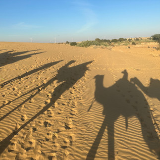 Après ces premières découvertes dans le désert du Thar, il était l'heure pour nous d'entamer notre safari à dos de chameau. 30 minutes de promenade au coeur d'une vaste étendue steppique, jusqu'à rejoindre notre campement pour la nuit, au beau milieu du désert. Un paysage à couper le souffle et un souvenir inoubliable ! J'ai pu prendre quelques photos à mes risques et périls, mais j'avais la chance d'avoir un chameau partenaire calme et discipliné.