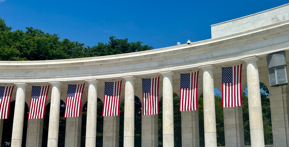 🇫🇷🔥🇺🇸 Vendredi toujours, nous avons participé avec Inès à une cérémonie très particulière qui se tenait à l'Arlington National Cemetery. Dans le cadre des commémorations des 80 ans du Débarquement en Normandie le 6 juin 1944, une flamme prélevée le 8 mai dernier sous l'Arc de Triomphe à Paris a fait le chemin inverse des soldats Alliés en leur temps. L'Opération Mirror - Flamme de la Liberté 2024, placée sous le haut patronage du Président de la République, a ainsi traversé ces dernières semaines la Normandie, puis l'Angleterre, avant de faire une halte ce jeudi à New York. La flamme était protégée par 34 jeunes ambassadeurs. Ce jour, elle a été déposée au pied de la tombe du soldat inconnu américain, en présence de l'ambassadeur de France et d'Helen Patton, petite-fille du Général Patton, héros de la Seconde Guerre mondiale. Une cérémonie similaire avait déjà eu lieu en 1949, il y a 75 ans, toujours à l'Arlington National Cemetery. Cimetière dont plus de 260 000 tombes venaient d'être ornées de drapeaux américains déposés par des soldats, à l'occasion du Memorial Day Weekend. Cette flamme venue de France brûlera en ce lieu jusqu'au 6 juin prochain.