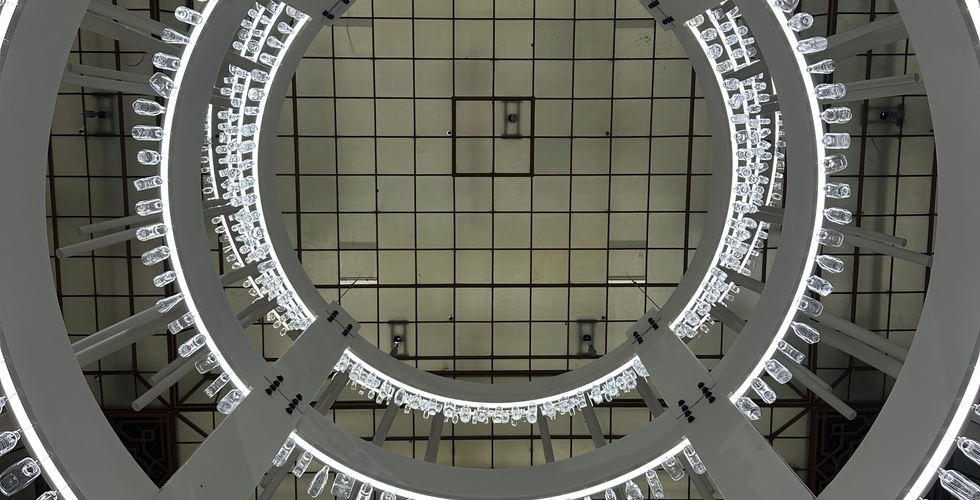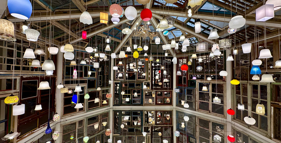 J'ai d'abord été saisi par les deux imposants chandeliers ornés de bouteilles en verre et d'acier, suspendus sous les verrières du Bon Marché. Puis, au deuxième étage, j'ai été captivé par une galerie des glaces monumentale et immersive, constituée de portes et de fenêtres de récupération, ainsi que d'une maison illuminée par des centaines de lampes provenant de la collection personnelle de Song Dong. Un univers onirique et presque infini, grâce aux jeux de miroirs, qui m'a fait penser à celui d'une Infinity Room de Yayoi Kusama.