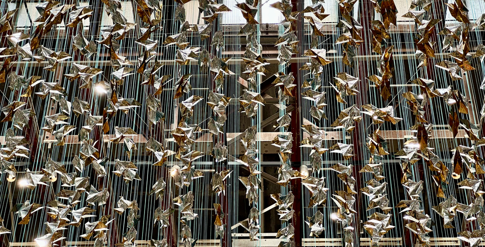 Samedi, nous avons redécouvert l'un des "grands magasins" de Paris, le Printemps Haussmann, qui souffle ses 160 bougies cette année. Au détour de notre session shopping, nous avons aperçu pour la première fois la magnifique coupole d'Eugène Brière, installée en 1923 au 6ème étage du Printemps Femme. Ensuite, au 7ᵉ étage, nous avons découvert deux superbes oeuvres d'art contemporain : "Moebius" (Atelier LAPS, 2021), ainsi que les 12 000 oiseaux métalliques en origami de Charles Kaisin (2021).