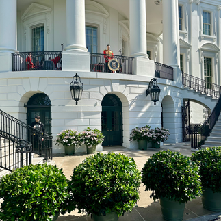 Quelques mètres plus loin, j'ai rejoint le South Portico du bâtiment principal de la Maison Blanche. Au balcon, l'United States Marine Band - l'orchestre du président - interprétait d'agréables notes de musique qui ont ponctué toute ma visite.