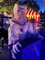 De nombreuses pancartes comportaient des avertissements loufoques : "n'entrez pas, il y a un mort à l'intérieur", "attention aux clowns", "pur poison et pur jus d'araignée ici" et "trick-or-treat" bien sûr !